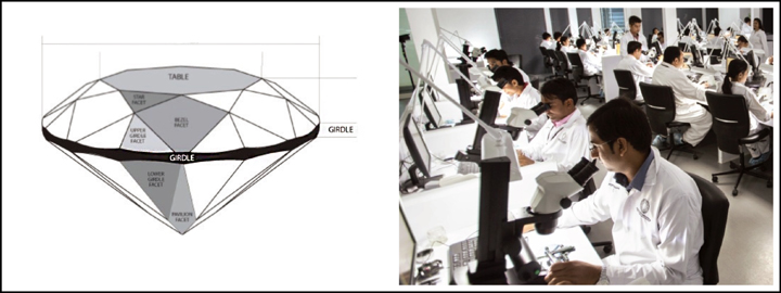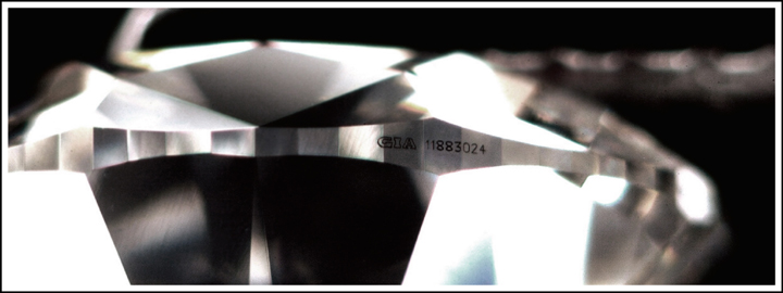 A laser beam is used to inscribe a message or GIA report number on a diamond’s girdle