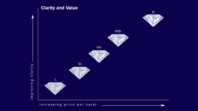 As clarity increases, and if all other value factors are equal, diamond price per carat also increases.